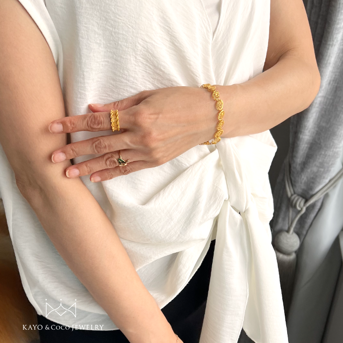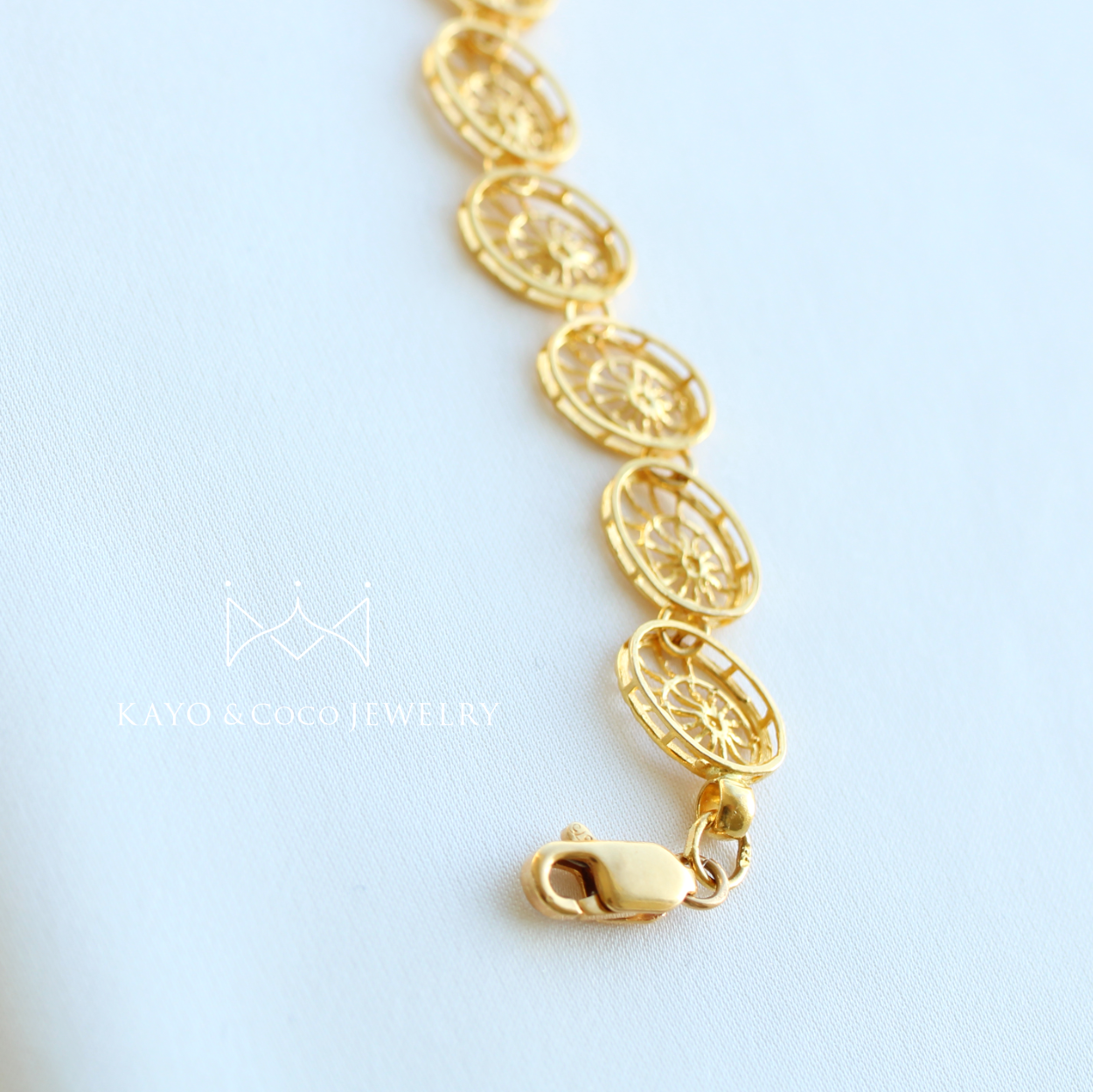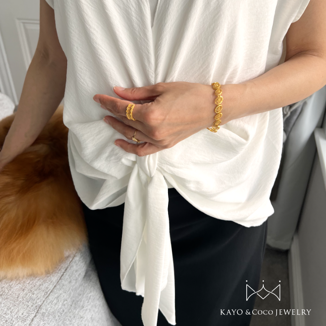 職人の技が生み出す透かし模様と、22Kならではの深い輝きが、軽やかで洗練された煌めきを手元に添えます。